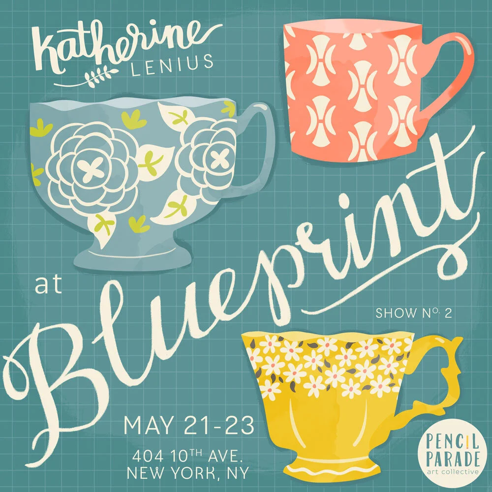 Pick up a little takeaway postcard from my booth at Blue Print. Pencil Parade will also have some goodies on hand in our booth and Blue Print offers each attendee a little swag bag too.