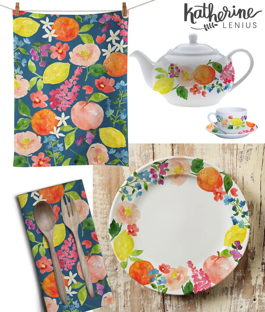 I cope by making floral art (then more Christmas, but then more florals). Florals will always have my heart. As the snow came down on Monday I was painting fruit and flowers, which turned out to be a nice form of therapy. Then, because I couldn’t help myself, I made this homewares collection presentation because I would LOVE to see this on some dishes or serving pieces - or a tablecloth!