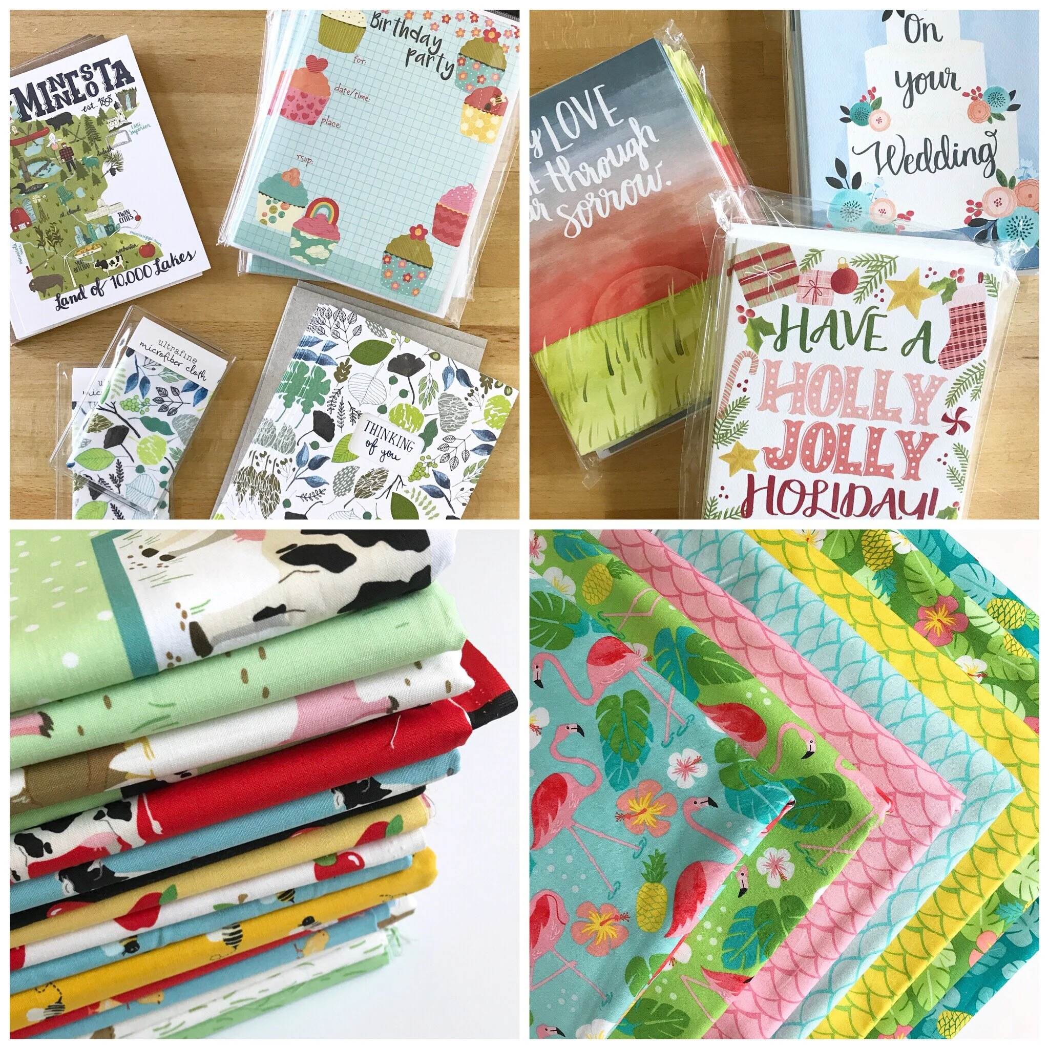 There are a few other new collections in my portfolio (see below) that I worked on this summer and I also received some fun new samples over the past few months! My first fabric collection with Robert Kaufman, Flamingo Paradise, is now in stores and the next collection, What do the Animals Say?, will be available soon! Because of the construction zone in my house I haven’t been able to make anything with the fabric yet, but I hope to get to that in the near future.