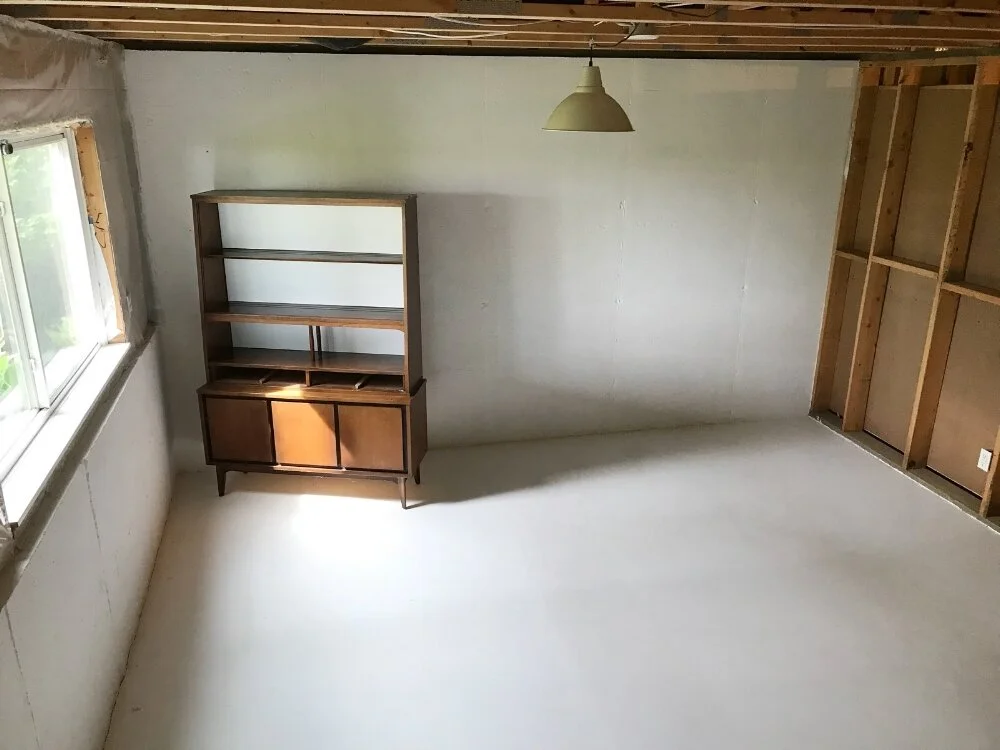 The "before" picture: my studio space all emptied out and ready to be finished. I painted the concrete white a few years back.